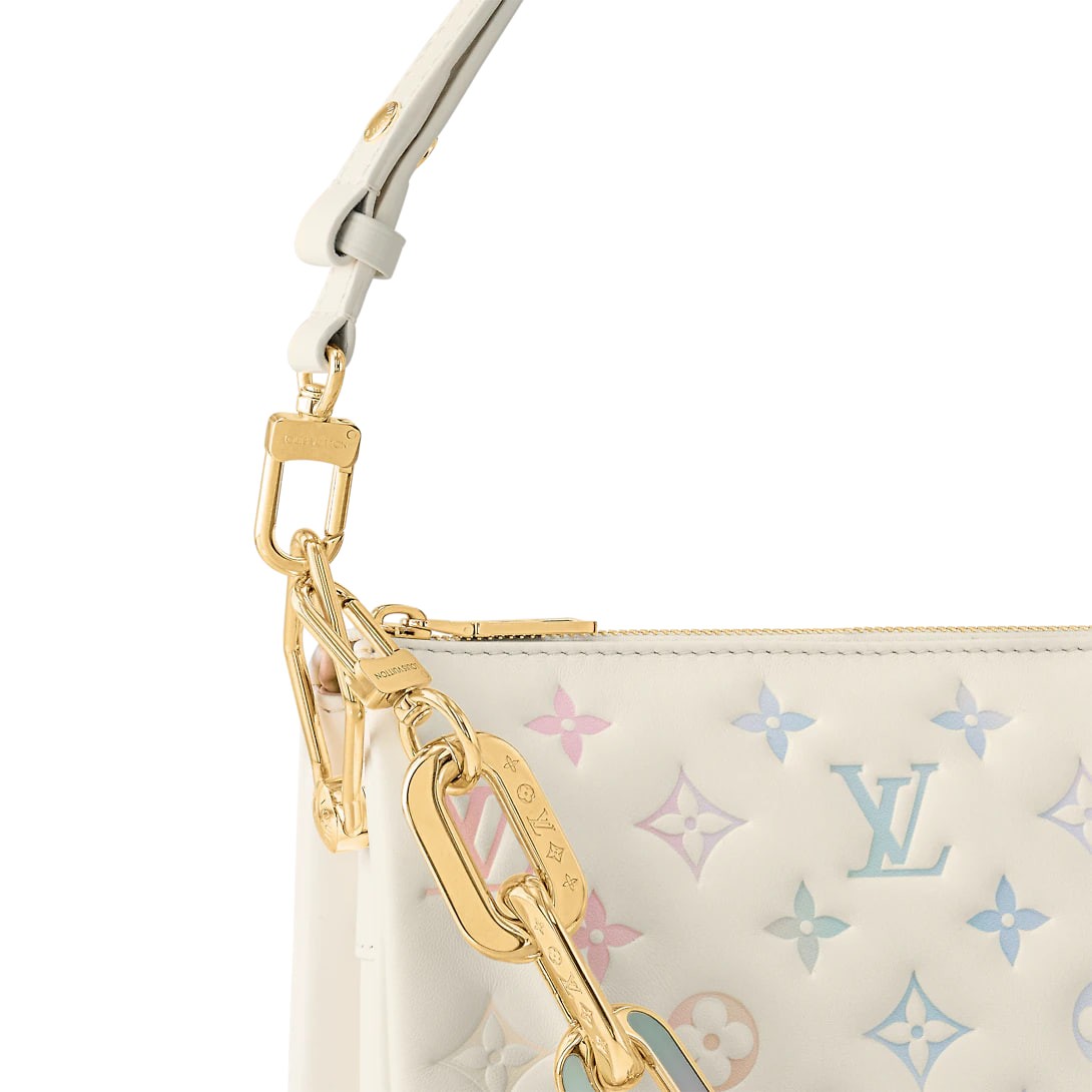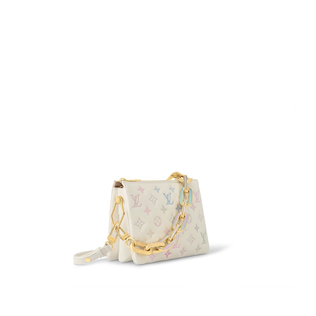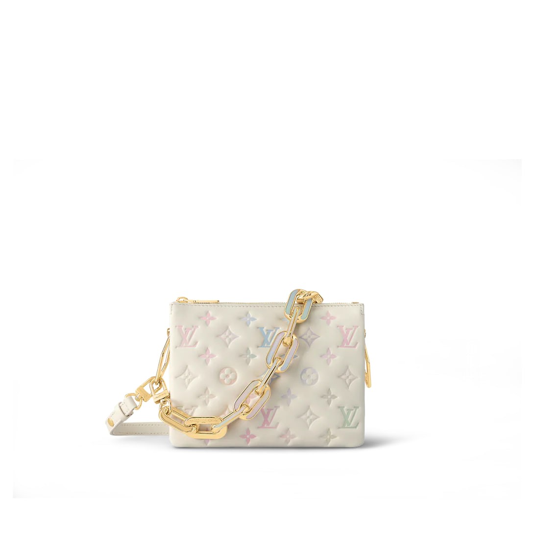 LV Milky Way launches the Valentine's Day limited edition Coussin BB handbag, a romantic gift for a loved one. Supple-padded sheep leather embossed with a monogram motif, the detachable chain is embedded in colours and the detachable leather shoulder strap allows for a variety of carrying options.